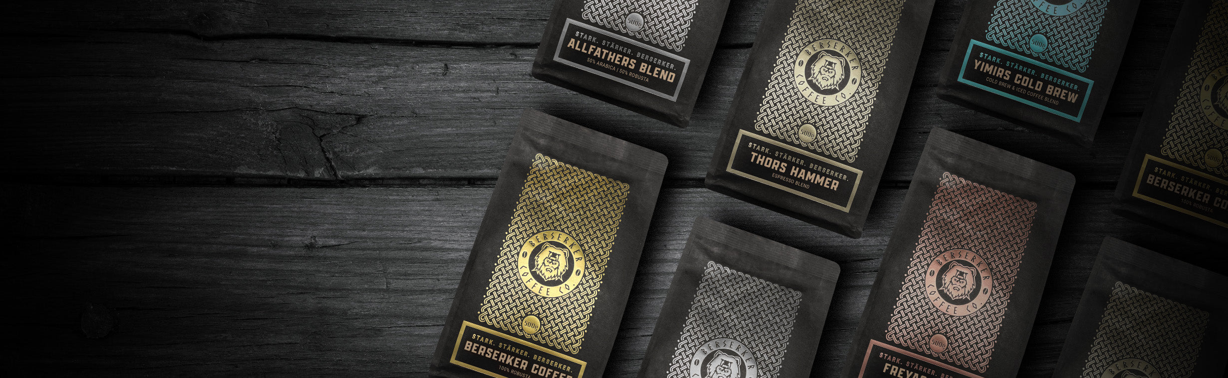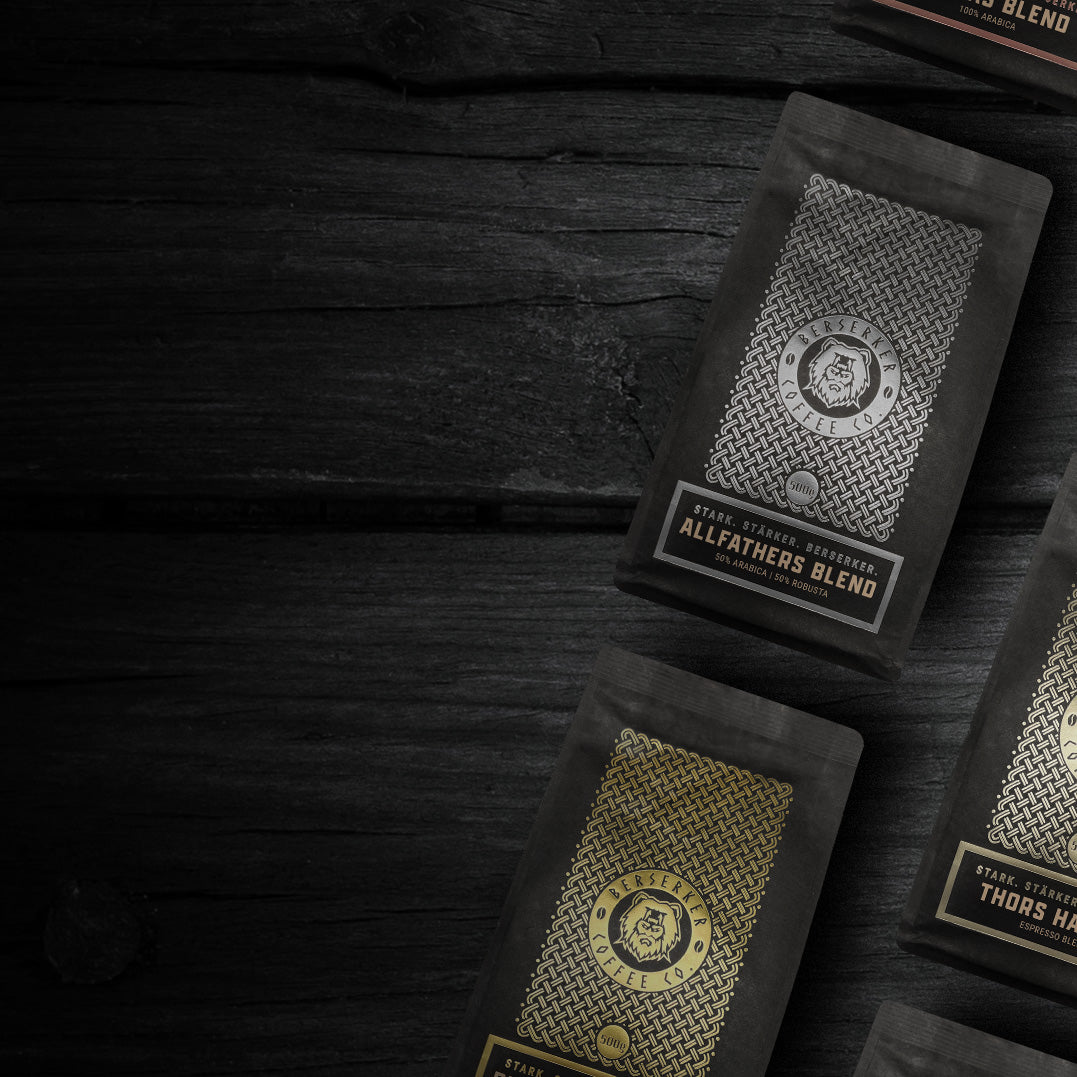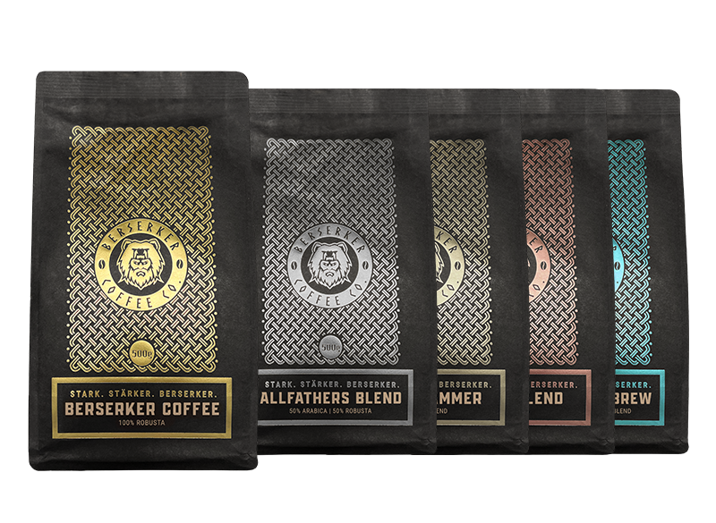 Du kannst all unsere dauerhaft verfügbaren Kaffees als Abo bestellen. Berserker Coffee, Allfather Blend, Thors Hammer Espresso, Freyas Blend und Yimirs Cold Brew.